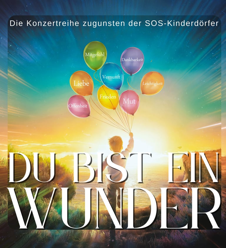 „Du bist ein Wunder“ versteht sich als Brücke zwischen Musikgenuss und sozialem Engagement. Die Konzerte bieten nicht nur ein außergewöhnliches musikalisches Erlebnis, sondern auch die Möglichkeit, aktiv einen Beitrag zu einer besseren Welt zu leisten. Jede Spende fließt zu 100% direkt in die Projekte der SOS-Kinderdörfer und ermöglicht es, Kinder in Not zu unterstützen.