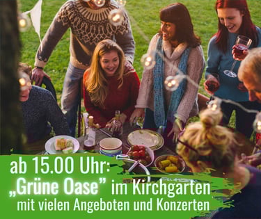Schlendert durch die "Grüne Oase" und genießt die vielfältigen, kulinarischen Angebote, besucht die mitreißenden Live-Konzerte und erlebt hautnah die Musik und den Gesang, lasst euch von einer Foto-Ausstellung und einer Lesung inspirieren, kommt zur Ruhe bei einer Meditation in der Pauluskirche oder erfreut euch einfach am aufgeschlossenen Miteinander und guten Gesprächen.